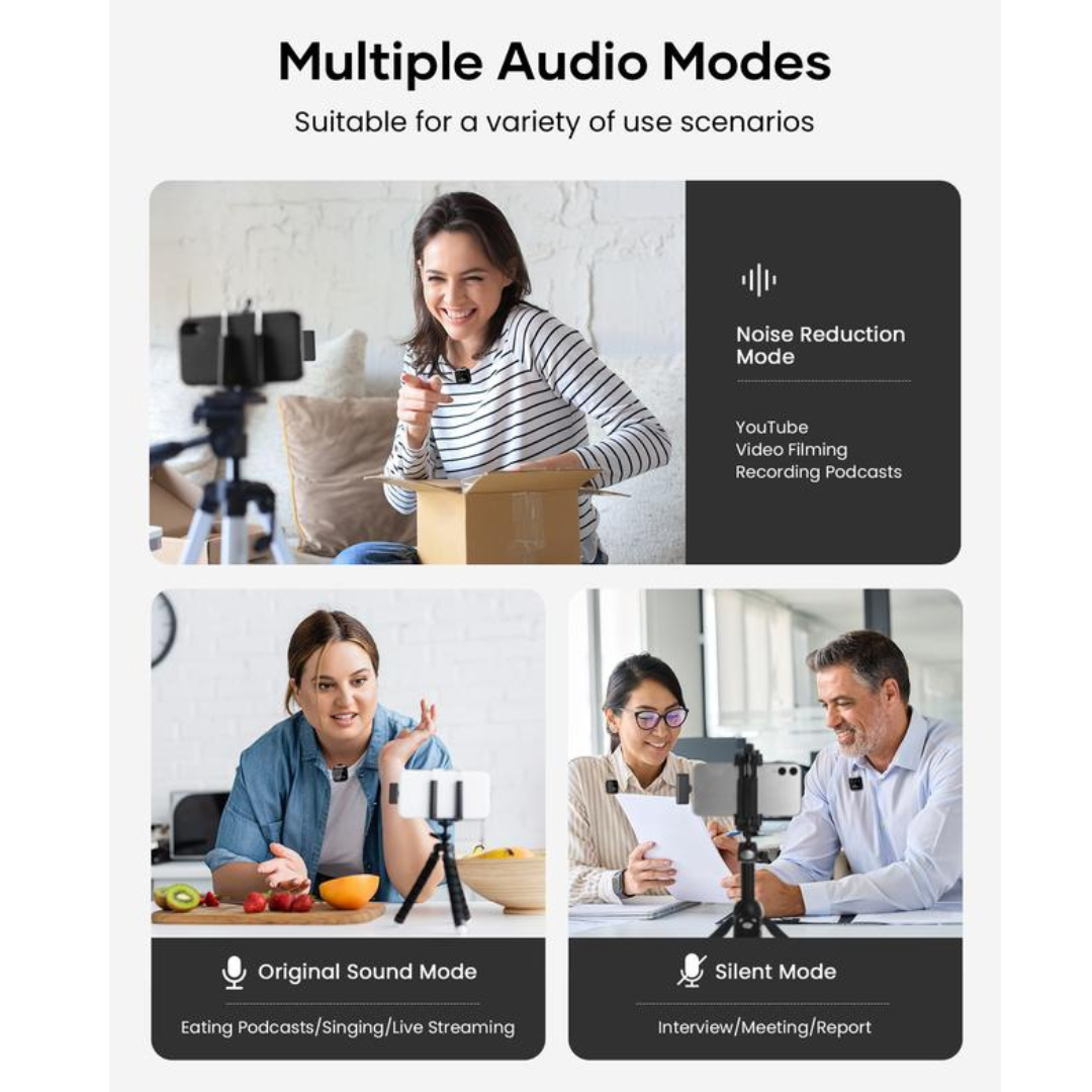 Te presentamos el micrófono inalámbrico, tu nuevo aliado para un sonido nítido y claro donde quiera que vayas. Ya sea que estés grabando vlogs, transmisiones en directo o entrevistas, este micrófono ofrece un impresionante alcance inalámbrico de 50 metros y captación omnidireccional de 360°, capturando cada palabra a la perfección.